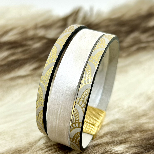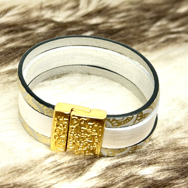Bracelet cuir blanc et or