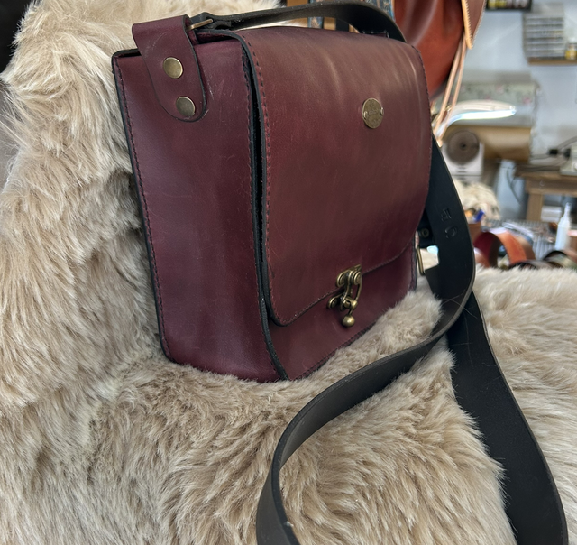 Sac à main en cuir de vachette bordeaux
