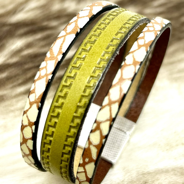 Bracelet cuir vert olive et marron