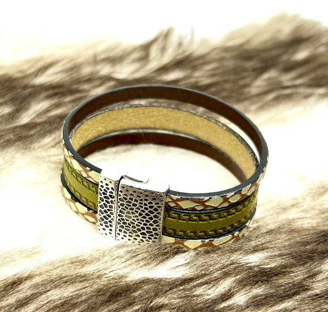 Bracelet cuir vert olive et fermoir or magnétique